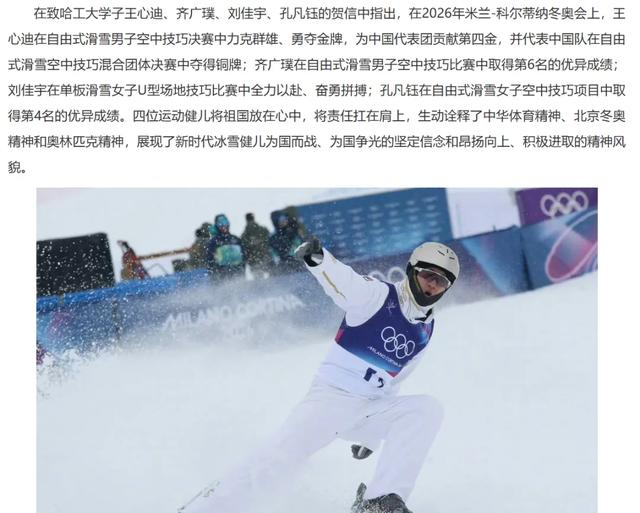 哈工大向王心迪等学子发出贺信