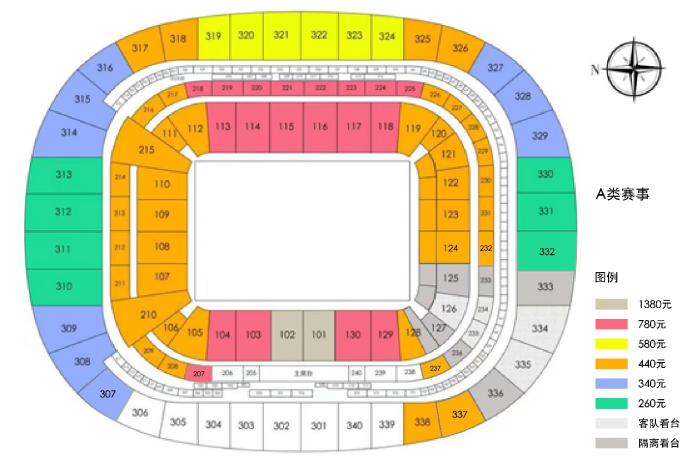 比赛票价:人民币260元、340元、440元、580元、780元、1380元