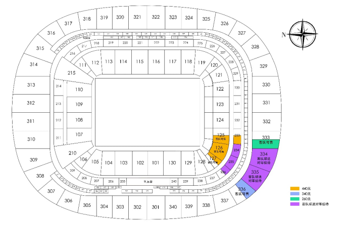 本场比赛客队区可售散票票区图如下: